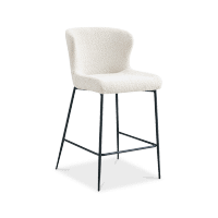 Breng een vleugje stijl en comfort in jouw huis met de prachtige Barstoel DORIEN in Bouclé Ecru. Met zijn luxe bouclé stof in een zachte tint, biedt deze stoel de perfecte combinatie van elegantie en gezelligheid. De barkruk Dorien heeft een zithoogte van 67cm.