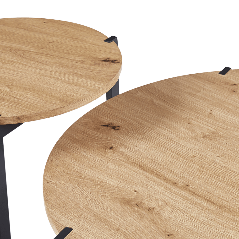 Het lichte en luchtige ontwerp maakt deze tafels eenvoudig te verplaatsen, zodat je flexibel blijft in de indeling van je ruimte. Gebruik ze samen voor een speels effect of apart om verschillende hoekjes in je woonkamer te creëren. Het hoogwaardige hout in combinatie met het stevige metalen onderstel zorgt voor een duurzame en stijlvolle oplossing!