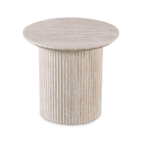 Bijzettafel PORTO in Decor Travertijn combineert elegantie met een natuurlijke uitstraling. Het verfijnde, ronde blad rust op een geribbelde, cilindervormige voet die doet denken aan klassieke architectuur. Dankzij de warme travertijnlook voegt deze tafel moeiteloos een luxueus en tijdloos accent toe aan elk interieur. PORTO is perfect als stijlvol solostuk of als aanvulling op de salontafel uit dezelfde serie.