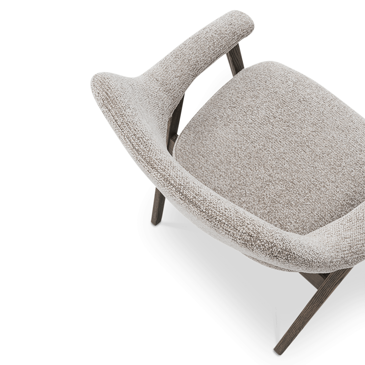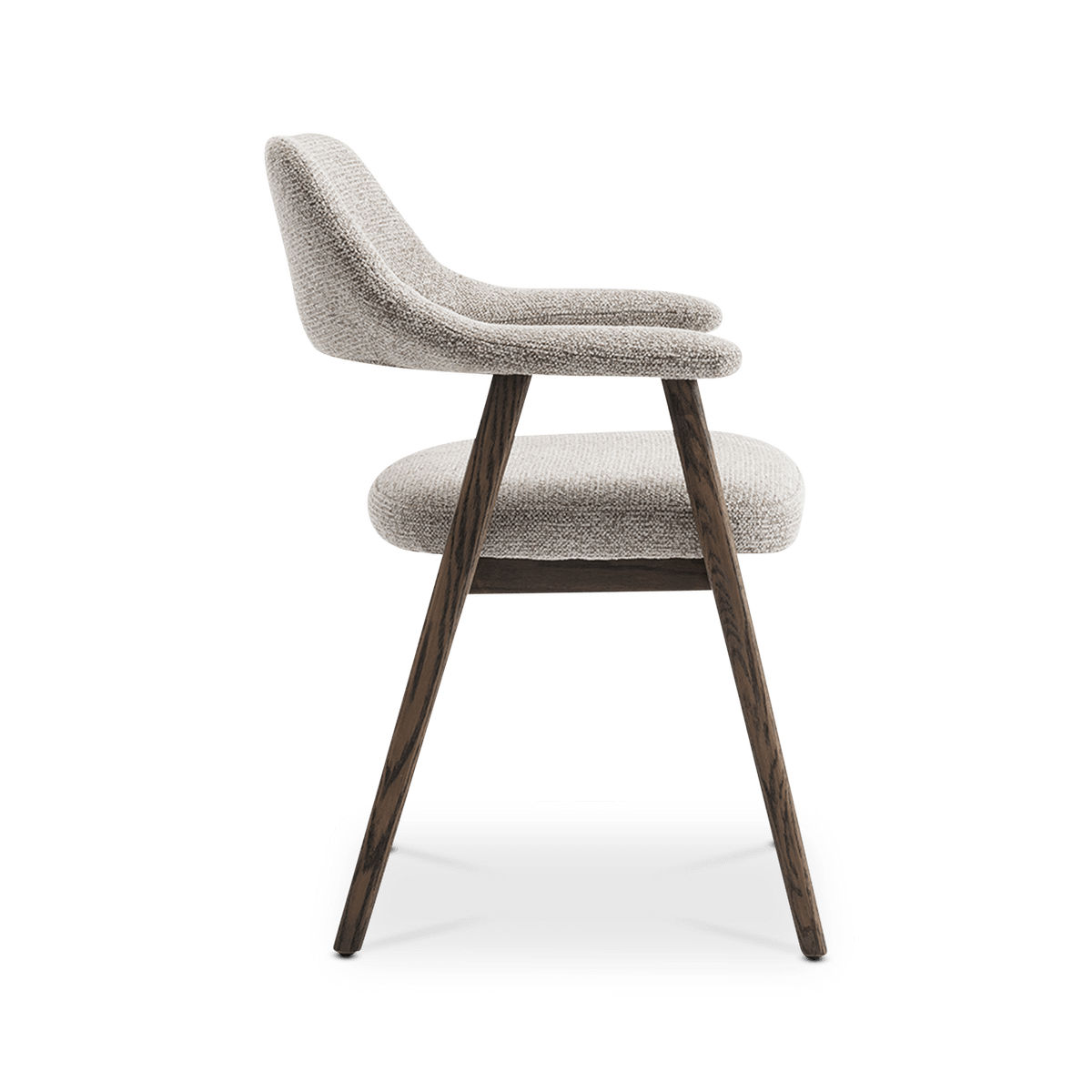 De TOVA-armstoel is een toonbeeld van verfijnd design en natuurlijke warmte.