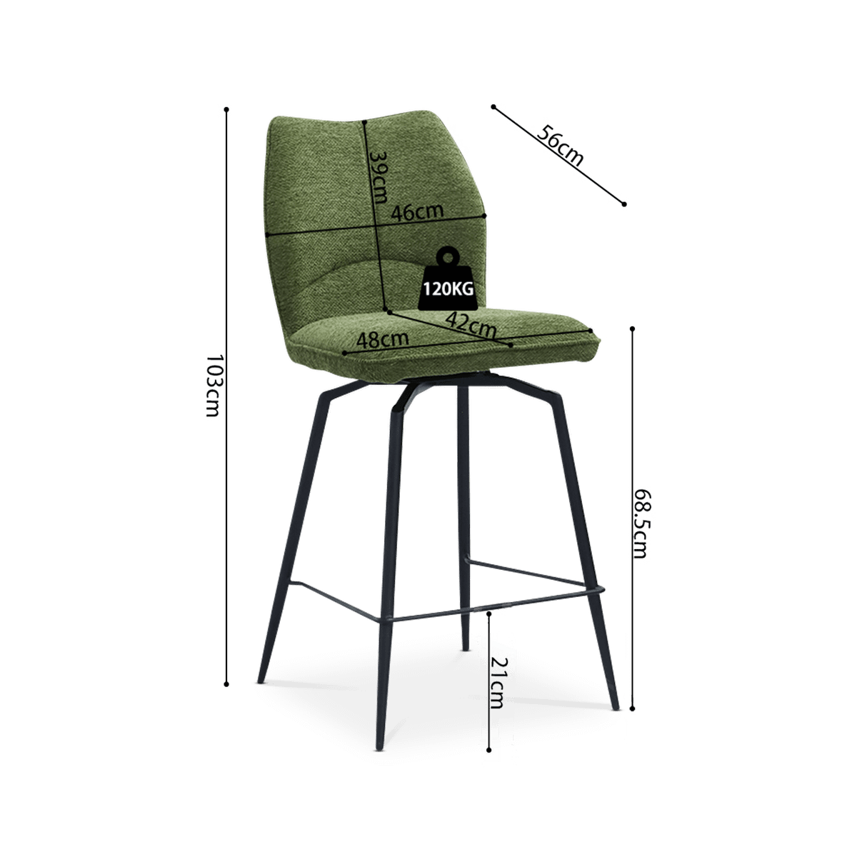 Barstoel ANETA Draaibaar Groen ZH68.5