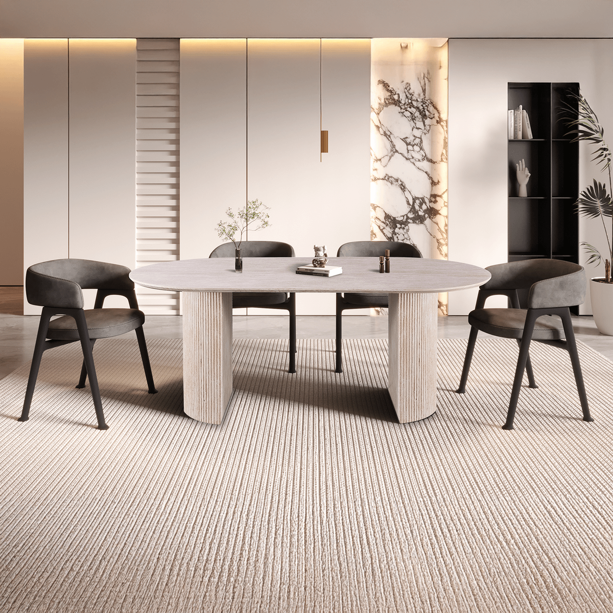 Ontdek de stijlvolle Eettafel PORTO in het elegante Decor Travertin – een perfecte combinatie van modern design en natuurlijke uitstraling. De organisch afgeronde vorm geeft een zachte, verfijnde touch aan je interieur, terwijl de robuuste, architectonisch gevormde poten zorgen voor stabiliteit en karakter. Dankzij het lichte travertin decor brengt deze tafel rust en warmte in elke eetruimte. PORTO is niet zomaar een tafel, maar een blikvanger die uitnodigt tot lange, sfeervolle diners en inspirerende gesprekken.
