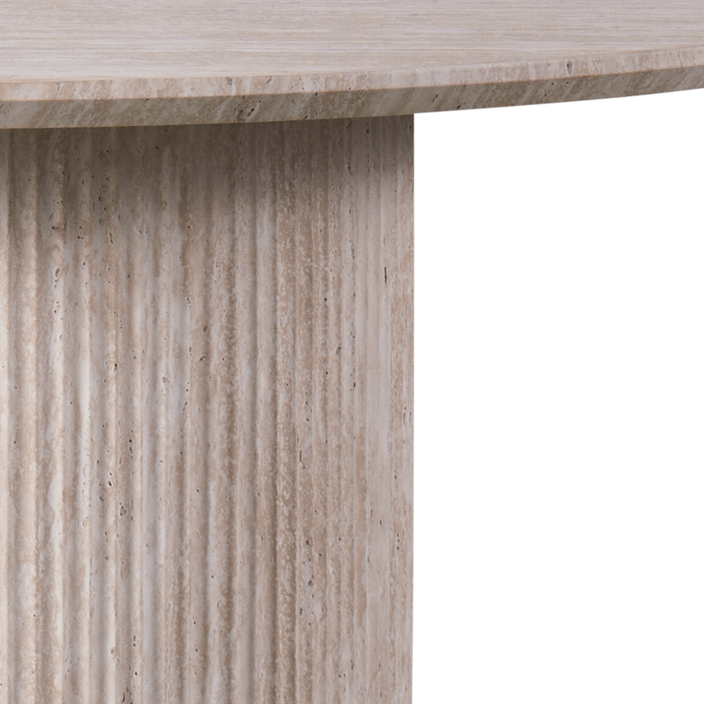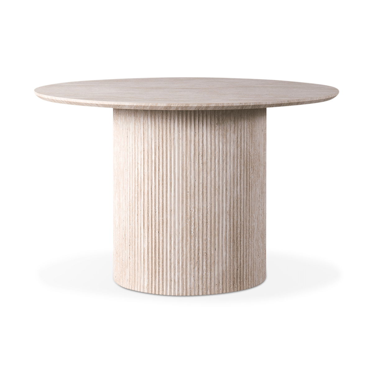 Ontdek de tijdloze elegantie van eettafel PORTO. Met een diameter van 120 cm en een hoogte van 76 cm biedt deze tafel voldoende ruimte voor gezellige diners. De beige travertijnlook geeft een verfijnde uitstraling aan elke eetruimte. Het 25 mm dikke bovenblad en de ronde vorm voegen een vleugje moderniteit toe aan het strakke ontwerp.