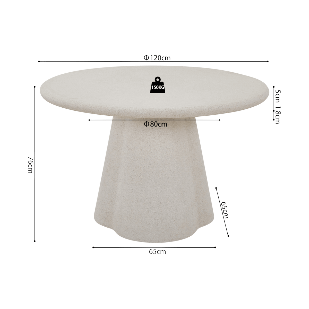 De ALBUFEIRA Eettafel combineert modern design met een stoere, natuurlijke uitstraling. Het ronde tafelblad in microcement geeft elke ruimte een rustige en eigentijdse sfeer.