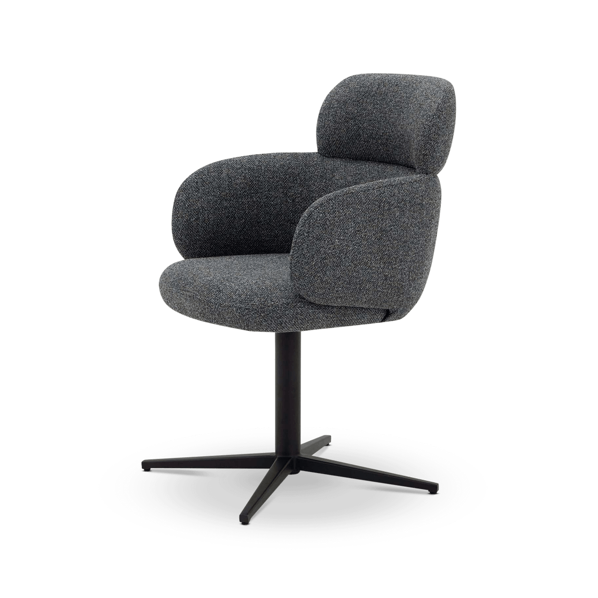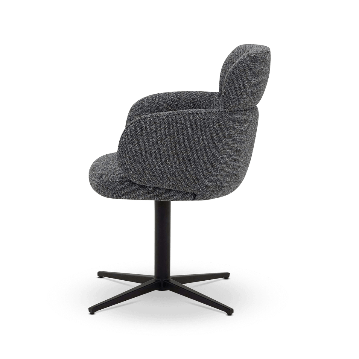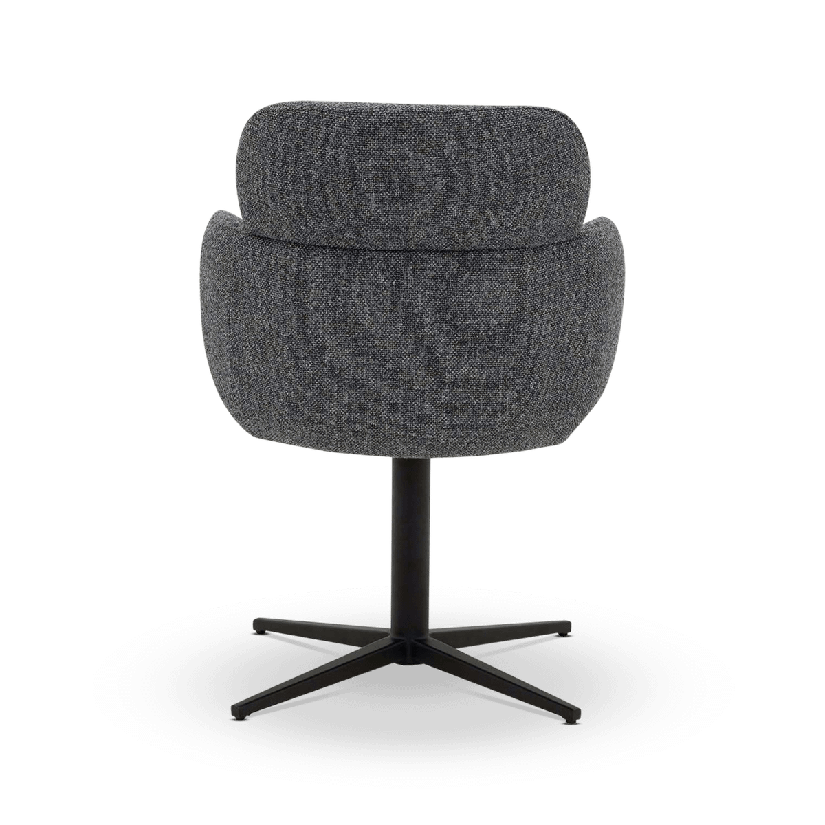 Dankzij de 360° draaifunctie geniet je van optimale bewegingsvrijheid, perfect voor zowel de eettafel als een moderne werkhoek. De afgeronde rug en armleuningen bieden een heerlijk zitcomfort en creëren een uitnodigende, cosy look.