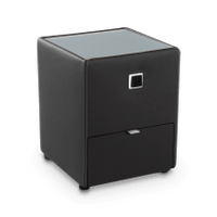 Op zoek naar een handig én trendy nachtkastje? Maak kennis met Asten! Dit stijlvolle, moderne nachtkastje in een lederlook afwerking in zwart is perfect voor iedereen die een informele sfeer willen creëren. Met de handige knop vooraan kun je de zachte LED-verlichting onder het bovenblad aan- en uitschakelen, ideaal voor een sfeervolle slaapkamer. Het nachtkastje heeft ook een handige lade met een metalen greep. Ontdek ook onze mogelijkheden voor een boxspring in dezelfde stofafwerking in de winkel!