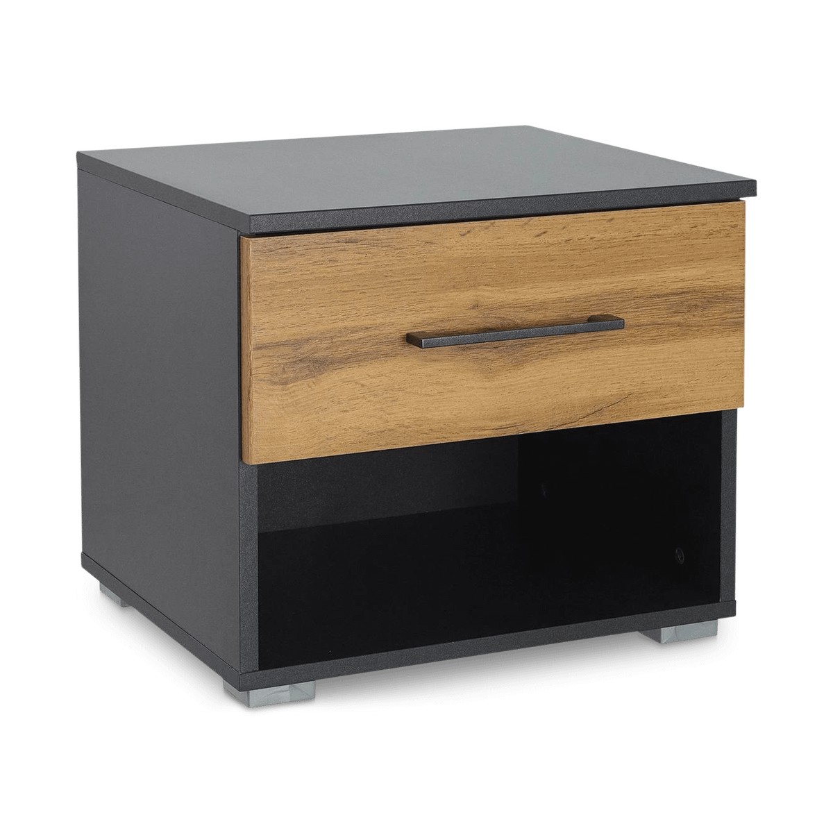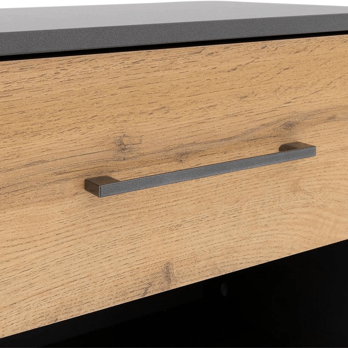Het ambachtelijk eikenhout gecombineerd met zijdeglans metaalgrijs geeft een eigentijdse urban industriële uitstraling, perfect voor moderne slaapkamers. Voorzien van een handige lade en een open opbergvak, biedt de SZAFKA niet alleen voldoende ruimte om al je benodigdheden op te bergen, maar voegt ook een vleugje elegantie toe aan je slaapkamer.