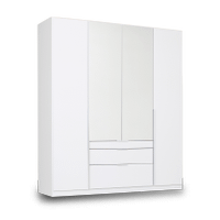 Op zoek naar een handige kleerkast die er modern en strak uitziet? Dan ben je met kleerkast IVEY helemaal aan het juiste adres! Deze handige kast die zowel een absolute meerwaarde is in elke slaapkamer heeft tal van opbergmogelijkheden dankzij zijn 4 deuren en 3 lades. Deze kast heeft een moderne uitstraling dankzij de strakke aluminium greep, de 2 middelste spiegeldeuren en zijn mooie witte afwerking.