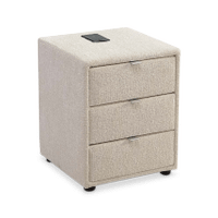 Nachttafel WEERT is de perfecte aanvulling op een stijlvolle slaapkamer en combineert elegantie met functionaliteit. Bekleed met luxe Chenille stof in een warme beige tint, straalt dit nachtkastje een verfijnde en tijdloze uitstraling uit. De drie ruime lades bieden voldoende opbergruimte voor al je essentials, terwijl de slanke metalen handgrepen een subtiel modern accent toevoegen. Dankzij de compacte afmetingen past WEERT perfect naast je bed, en de ingebouwde USB-aansluiting zorgt voor extra gemak, zodat je eenvoudig je apparaten kunt opladen. Een praktische en stijlvolle toevoeging voor een harmonieus ingerichte slaapkamer!