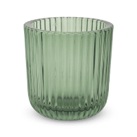 De RIBIS theelichthouder in het groen brengt een frisse en sfeervolle toets in je interieur. Wanneer je er een theelichtje in aansteekt, danst het vlammetje door het geribbelde glas en verspreidt het een warme gloed in de ruimte. Combineer de verschillende maten en kleuren voor een speels en stijlvol effect.