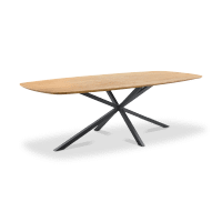 Ontdek de perfecte harmonie van elegantie en duurzaamheid met onze Deens ovale eettafel ASKA. Het tafelblad, vervaardigd uit 3 cm dik recycled teak, straalt karakter en warmte uit. De met zorg afgeschuinde rand voegt een subtiel vleugje verfijning toe aan deze tijdloze creatie. De tafel staat op een moderne, metalen matrixpoot die niet alleen voor stabiliteit zorgt, maar ook een eigentijdse touch aan je eetruimte geeft.