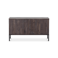 Onze enorm populaire GRAVURE serie heeft een make-over gekregen! Een hip en modulair tv-meubel met grafische reliëf deuren, in essenhout en afgewerkt met een espressokleurige beits en met zwarte, metalen poten.