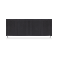 De binnenkant bestaat uit mat zwarte spaanplaat en 4 uitneembare legplanken die je in hoogte kan verstellen. Deze dressoir heeft 4 deuren die je kan openen en sluiten met een makkelijk push-to-open systeem. En vind je het leuk om verschillende Gravure kasten naast elkaar neerzetten? Dan verbind je de meubels eenvoudig met één poot voor en achter!