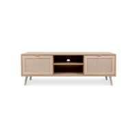 Dankzij de natuurlijke uitstraling met zijn rietpanelen bedrukking en zeer naturele houtkleurige look, is deze EIVISSA-collectie het van het voor de hipster die klein maar fijn woont. Nu eens bohemien, dan weer chic, deze meubelen geven een leuk cachet aan je interieur en al zeker in combinatie met mooie planten. En als kers op de taart is deze collectie 100% EU-made. Het Eivissa-TV-meubel is 150cm breed en 52cm hoog en heeft twee nissen en 2 valdeuren en is voorzien van een opening aan de achterwand om alle draden in weg te werken. Bovendien zorgen de massief houten poten voor een stevige ondersteuning!