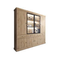 Met twee glazen deuren en zes volle deuren biedt de Castello voldoende ruimte om je favoriete items veilig op te bergen en tegelijkertijd stijlvol te presenteren. Voeg optionele LED-verlichting toe om je collectie in de schijnwerpers te zetten en een warme ambiance te creëren.