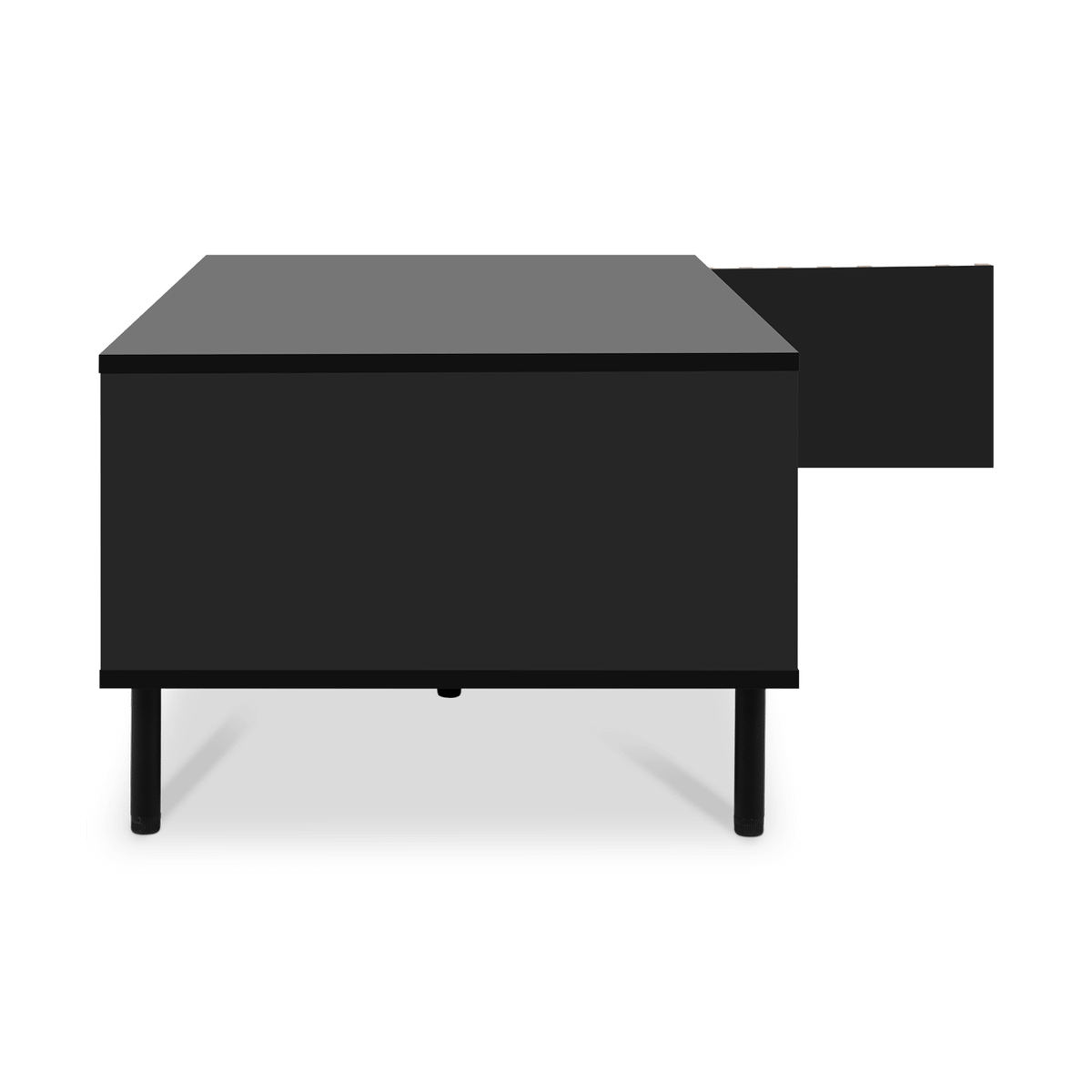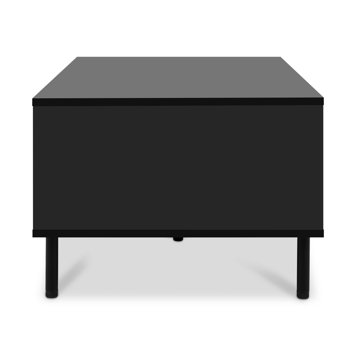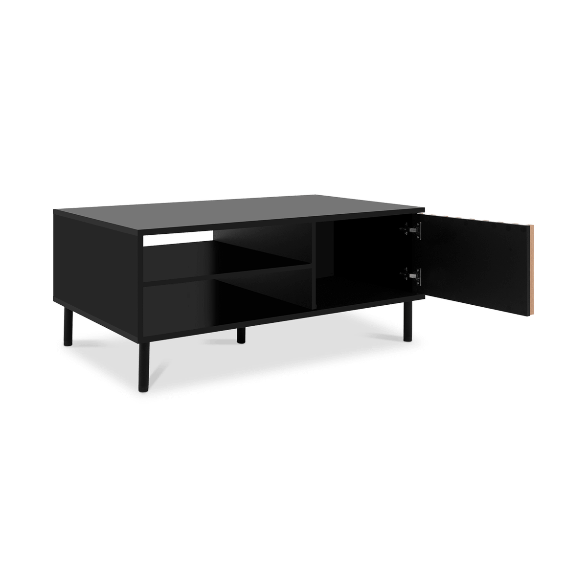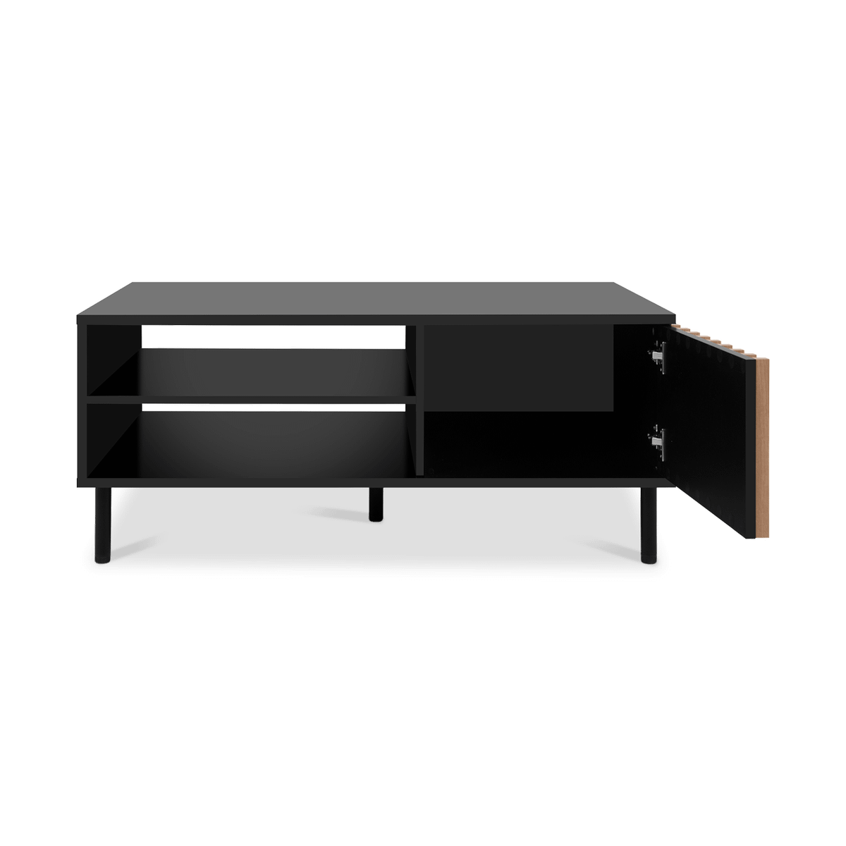 De salontafel ERNESTO combineert strakke lijnen met een verfijnde afwerking, waardoor hij perfect past in zowel moderne als eigentijdse interieurs. Met zijn elegante zwarte frame en unieke houten lattenstructuur aan de zijkant straalt deze tafel klasse en warmte uit.
