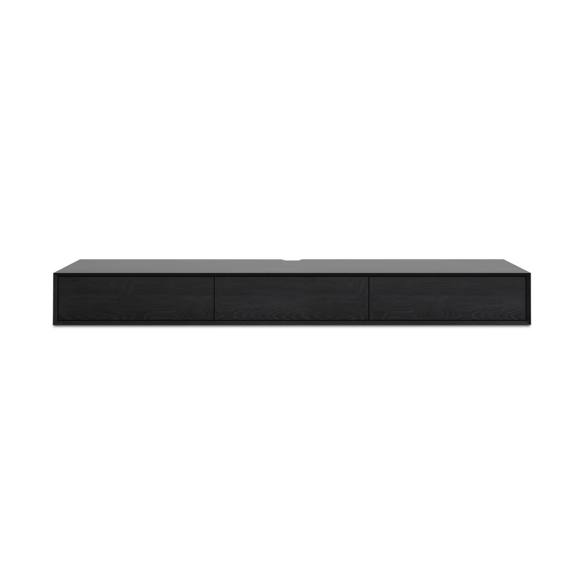 De praktische klapdeuren bieden voldoende opbergruimte voor al je multimedia-apparatuur, terwijl het zwevende ontwerp het meubel een luchtig en elegant karakter geeft.