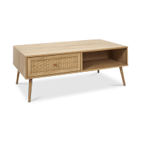 Ontdek de salontafel CANNA, voorzien van een lade en nis met trendy rotan details.