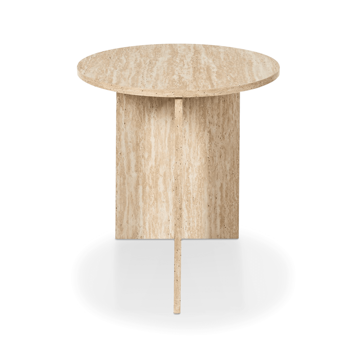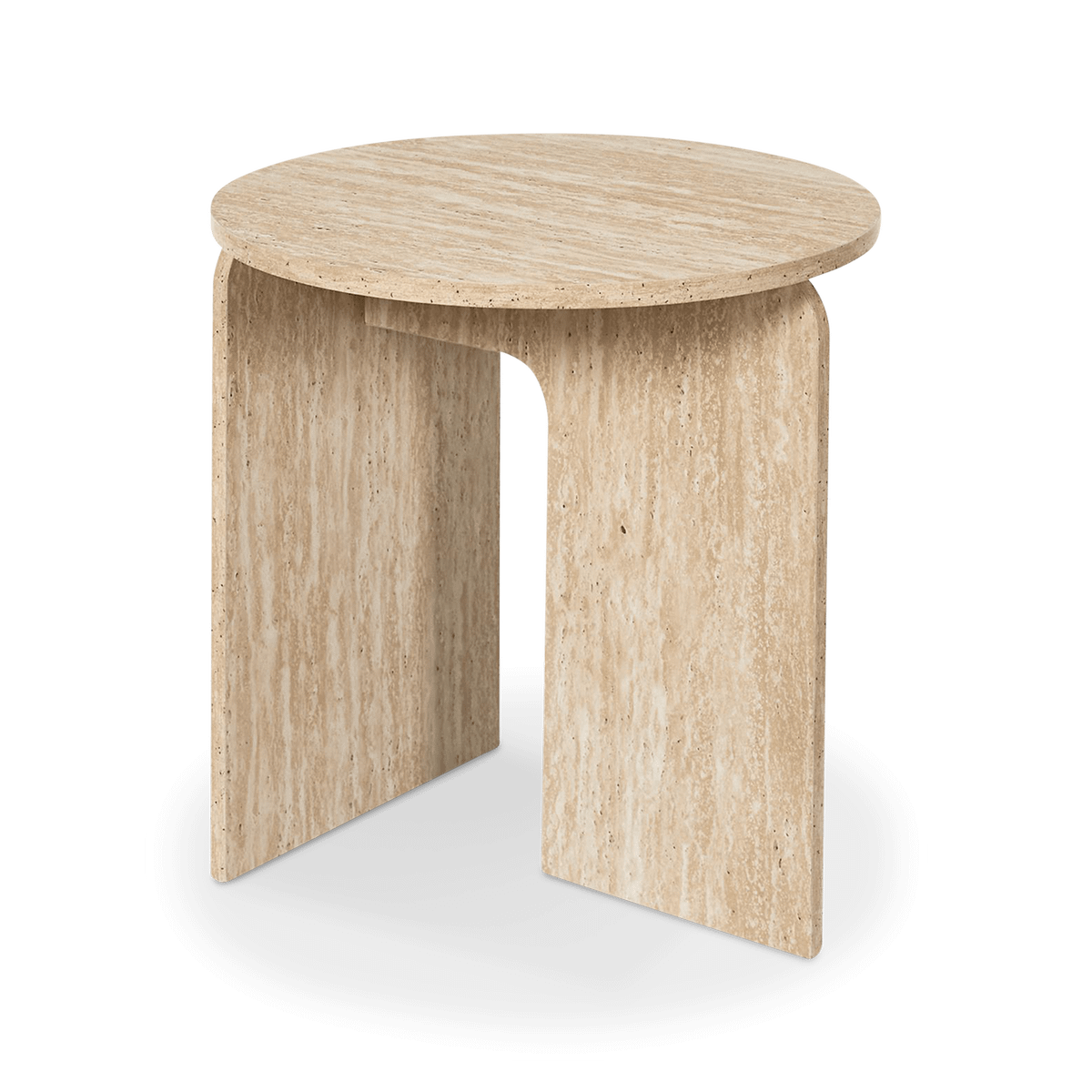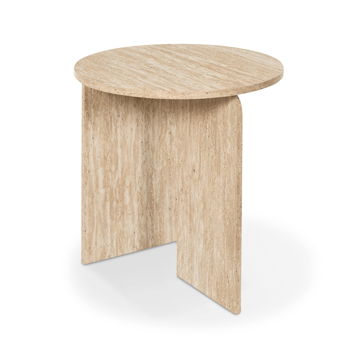 De elegante travertijnlook en zachte, afgeronde vormen zorgen voor een rustige en verfijnde uitstraling. Het compacte formaat maakt deze tafel ideaal als praktische aanvulling naast je zetel of fauteuil, zonder in te boeten op stijl.