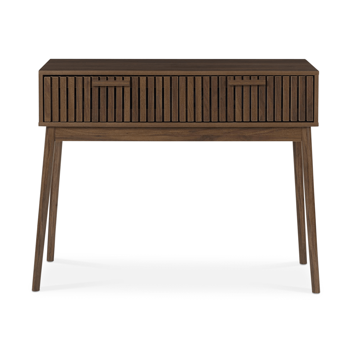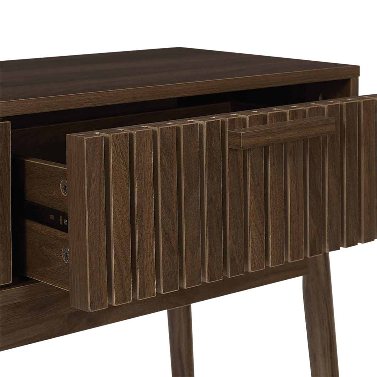 Ontdek prachtige volledig houten console CALUNA voor je interieur. Het rechthoekige ontwerp en de twee grote lades geven je interieur meteen een moderne touch.
