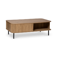 Salontafel COLVAS past perfect in elke trendy huiskamer! Met zijn leuke open nis, die zowel functioneel als esthetisch is, als de fijne extra opbergruimte die je opendoet dankzij een schuifdeurtje, is deze houten salontafel echt hét van hét. Ontdek ook zeker andere items in deze collectie!