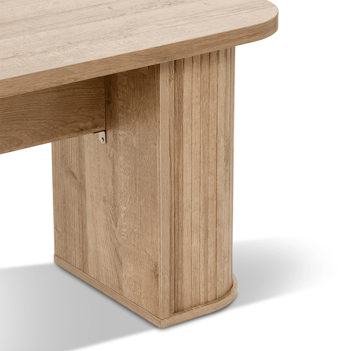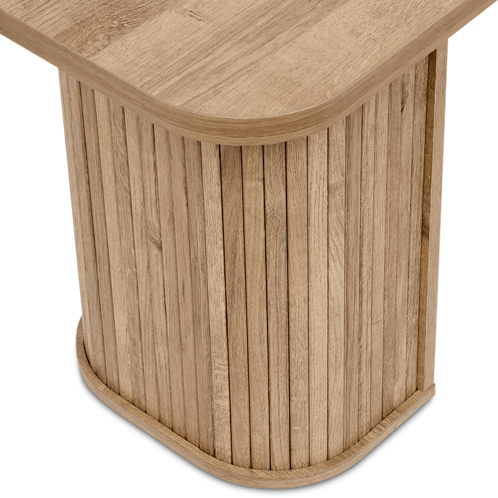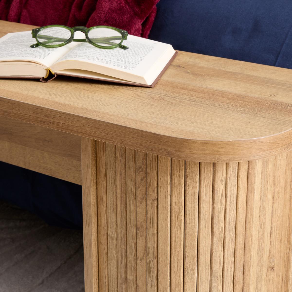 De afgeronde hoeken en verticale reliëfafwerking aan de poten geven het ontwerp een verfijnde, moderne uitstraling. Met een breedte van 140 cm biedt deze bank voldoende plaats om te zitten of decoratief te gebruiken met kussens of een plaid. COLVAS combineert warme houttinten met een strak lijnenspel – stijlvol, functioneel en makkelijk te combineren met diverse interieurstijlen.