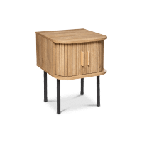 Met nachttafeltje COLVAS haal je meteen sfeer en gezelligheid in huis. Dankzij zijn mooie, naturelle afwerking en mat zwarte pootjes, past dit nachttafeltje in bijna elke setting. Extra handig is het leuke schuifdeurtje, dat meteen toegang geeft tot extra opbergruimte.