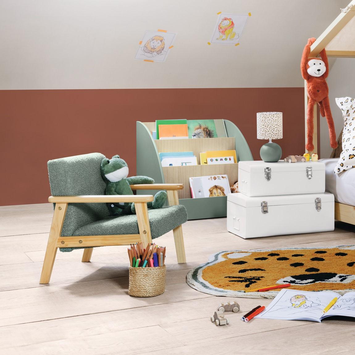 De kinderstoel BAZILE is een heerlijk knus plekje voor je kids! Met zijn zachte, groene bouclé bekleding voelt hij aan als een warme knuffel, terwijl de stevige houten poten en armleuningen zorgen voor de nodige steun. De natuurlijke houttinten passen perfect bij het vrolijke groen, waardoor Bazile er niet alleen superleuk uitziet, maar ook een gezellige toevoeging is aan elke kinderkamer. Ideaal voor boekjes lezen, tekenen of gewoon even chillen!