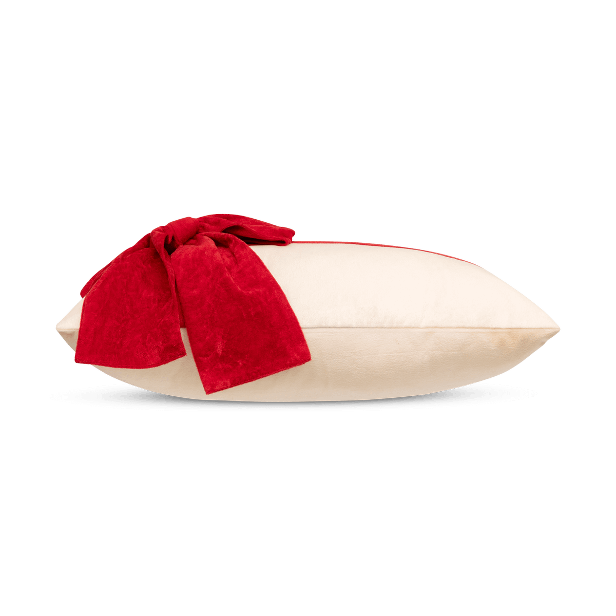 Kussen GIFTY Beige met Strik Rood is toegevoegd aan je winkelmandje