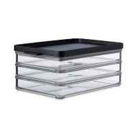 De bovenste laag is bovendien voorzien van een deksel, waardoor deze volledig lucht- en aromadicht afgesloten wordt. Ook is de deksel zo vormgegeven, dat er gemakkelijk meerdere Omnia koelkastdozen op elkaar gestapeld kunnen worden. Hoeveel verschillende soorten beleg je ook wilt bewaren, met deze Omnia koelkastdoos houd je alles netjes bij elkaar. De vleeswarendoos is uitgevoerd in stijlvol zwart, wat hem ook nog eens een mooie verschijning maakt!