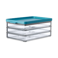 De bovenste laag is bovendien voorzien van een deksel, waardoor deze volledig lucht- en aromadicht afgesloten wordt. Ook is de deksel zo vormgegeven, dat er gemakkelijk meerdere Omnia koelkastdozen op elkaar gestapeld kunnen worden. Hoeveel verschillende soorten beleg je ook wilt bewaren, met deze Omnia koelkastdoos houd je alles netjes bij elkaar. De vleeswarendoos is uitgevoerd in stijlvol groen, wat hem ook nog eens een mooie verschijning maakt!
