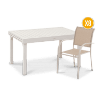 SET: Tuintafel RISERVA Beige 135/270x90 + 8x armstoel RISERVA Beige