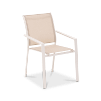 De DURELLA tuinstoel is een elegante aanvulling voor elke tuin of terras. De stoel heeft een zitting en rugleuning van beige texaline, wat zorgt voor een zachte en aangename zitervaring. Het frame van deze stapelbare stoel is vervaardigd uit epoxy-gecoat aluminium, wat niet alleen zorgt voor een strakke look, maar ook beschermt tegen regen. Dit maakt de Durella niet alleen stijlvol, maar ook duurzaam en weerbestendig.