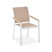 De DURELLA tuinstoel is een elegante aanvulling voor elke tuin of terras. De stoel heeft een zitting en rugleuning van beige texaline, wat zorgt voor een zachte en aangename zitervaring. Het frame van deze stapelbare stoel is vervaardigd uit epoxy-gecoat aluminium, wat niet alleen zorgt voor een strakke look, maar ook beschermt tegen regen. Dit maakt de Durella niet alleen stijlvol, maar ook duurzaam en weerbestendig.