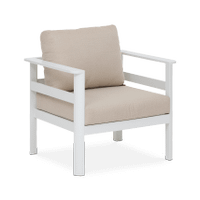 Geniet van pure ontspanning met de Fauteuil VITERBO, waar comfort en stijl naadloos samenkomen. Het strakke witte aluminium frame in combinatie met warme acaciahouten details geeft deze loungestoel een moderne, luxueuze uitstraling. De dikke, zachte kussens in een natuurlijke beigetint zorgen voor een heerlijk zitcomfort, ideaal voor lange momenten van rust in de tuin of op het terras. De VITERBO fauteuil is niet alleen een comfortabele zitplek, maar ook een elegante toevoeging aan elke buitenruimte!