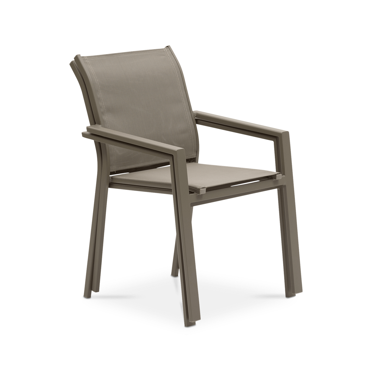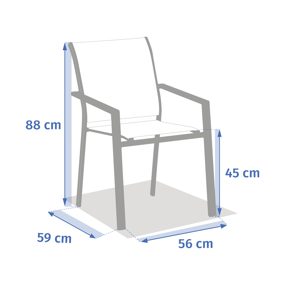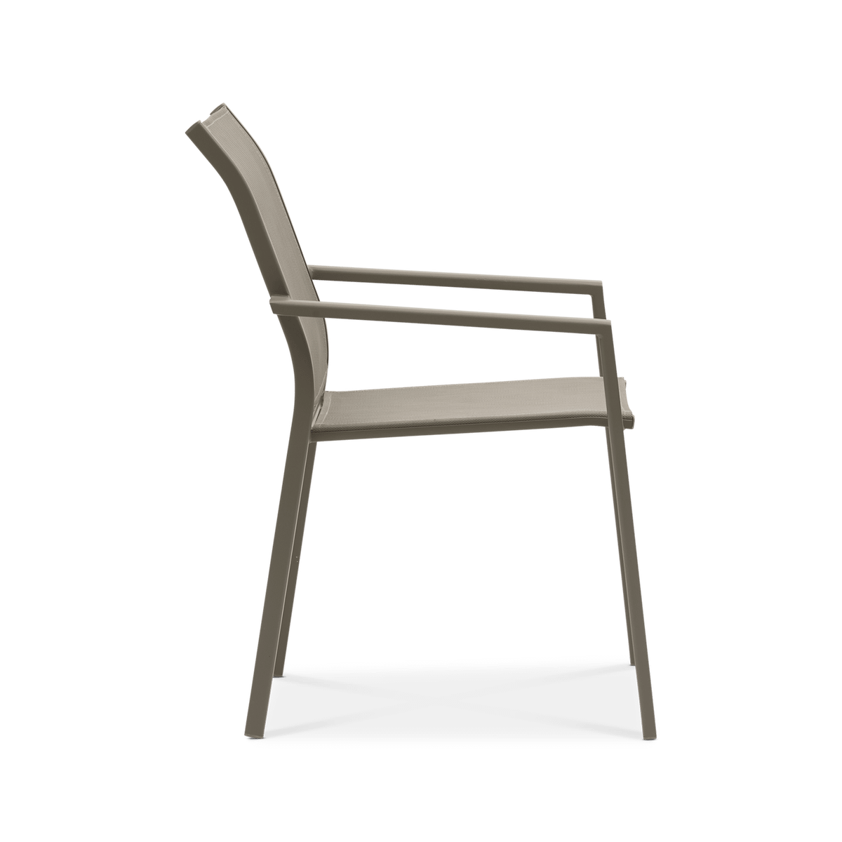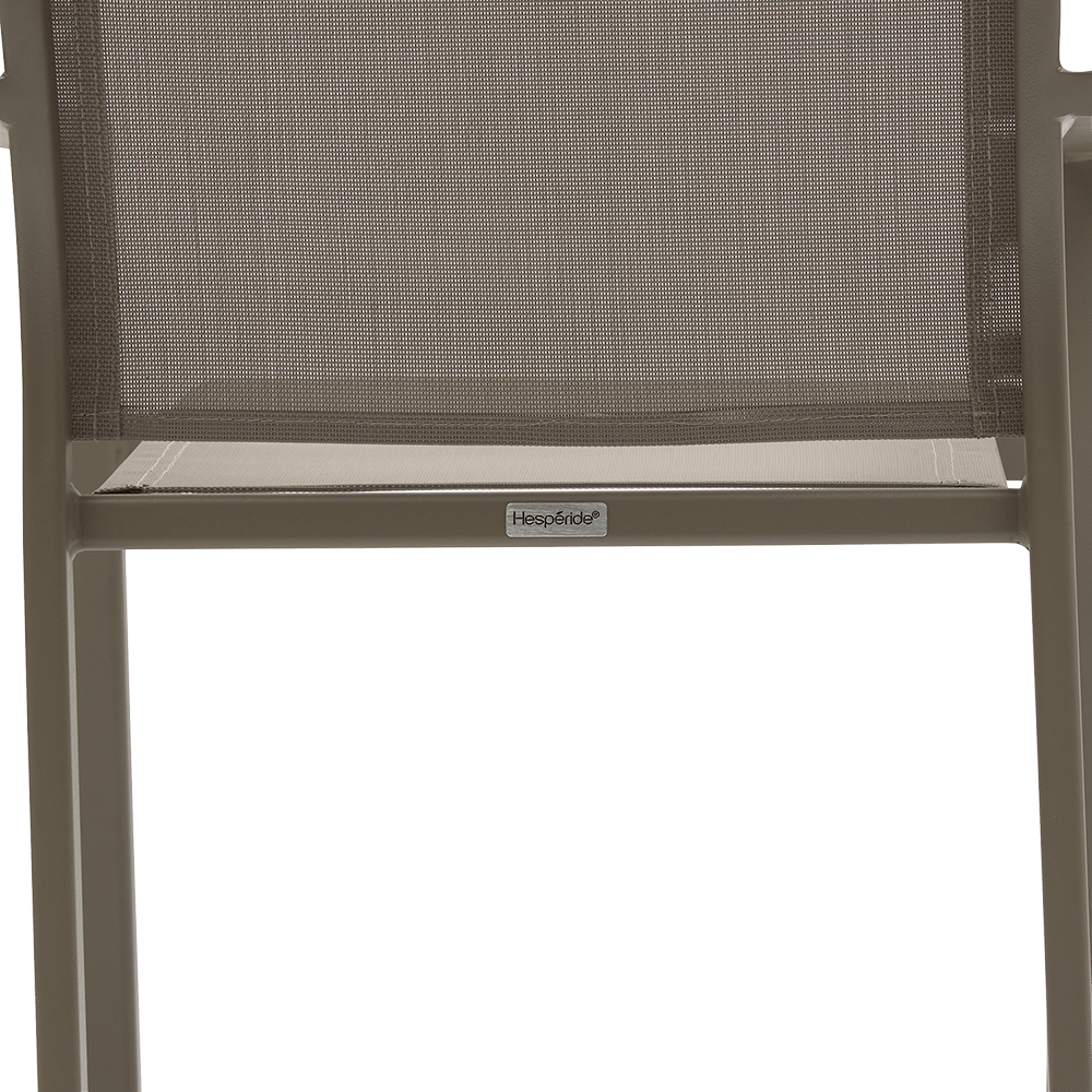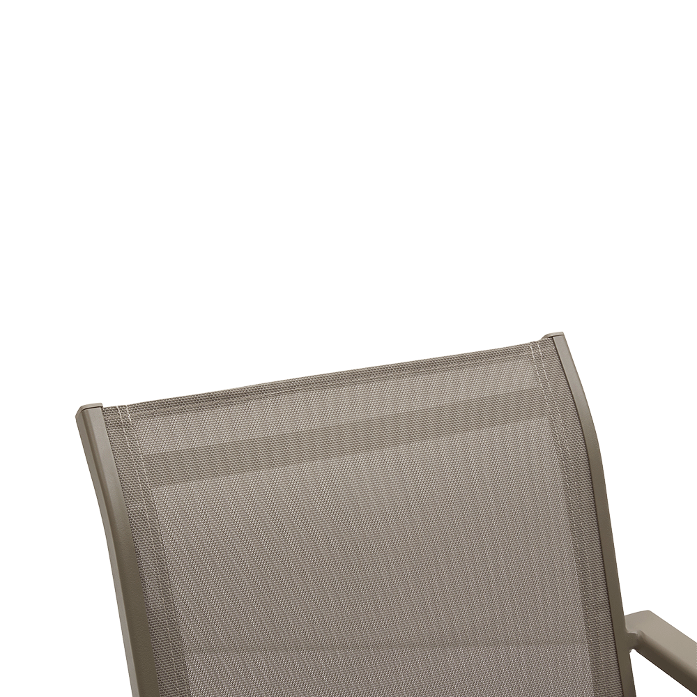 Deze stoel is lichtgewicht, stapelbaar en weerbestendig, wat hem bijzonder praktisch maakt voor dagelijks buitengebruik. De ergonomisch gevormde rug en ademende stof bieden een aangename zit, ook tijdens lange zomerdagen.