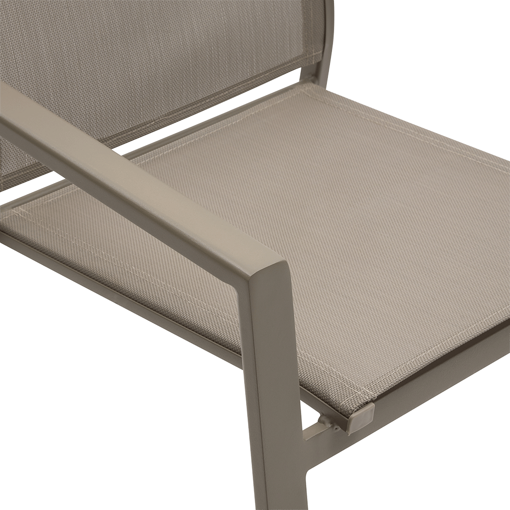 De DURELLA Tuinstoel in Hazelnoottint is een toonbeeld van modern comfort en natuurlijke elegantie. Het aluminium frame met textileen zitting zorgt voor een luchtige, stijlvolle uitstraling die moeiteloos aansluit bij elk terras of tuinmeubel.