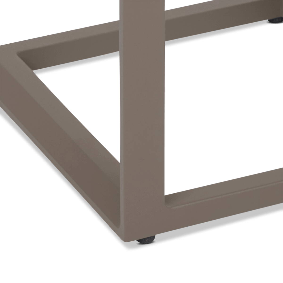De FURORE Bijzettafel combineert strak design met functionele elegantie. Het aluminium frame in stijlvolle koffiekleurz orgt voor een moderne, warme uitstraling die perfect past bij diverse buitenstijlen.