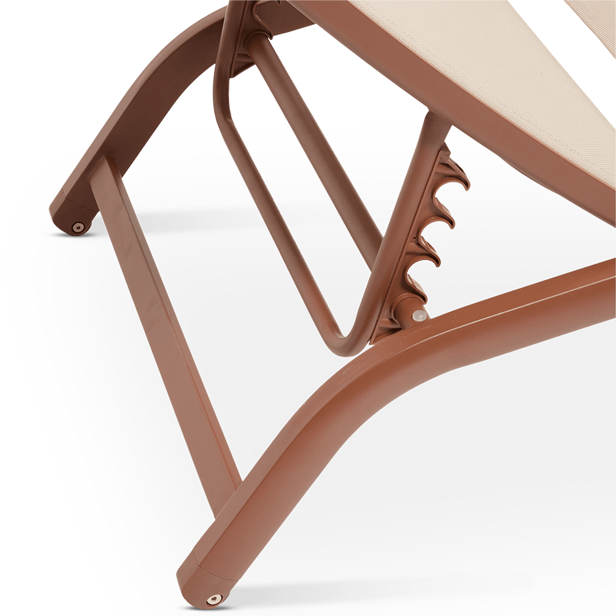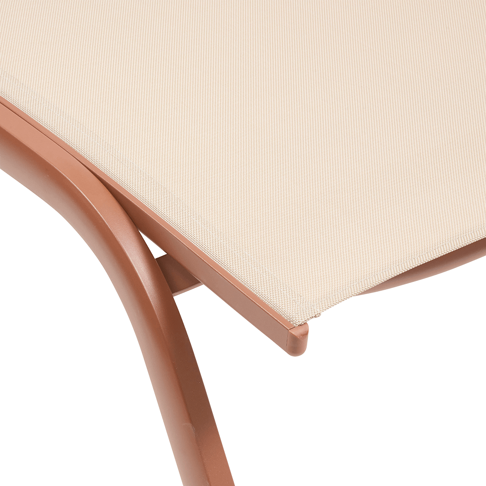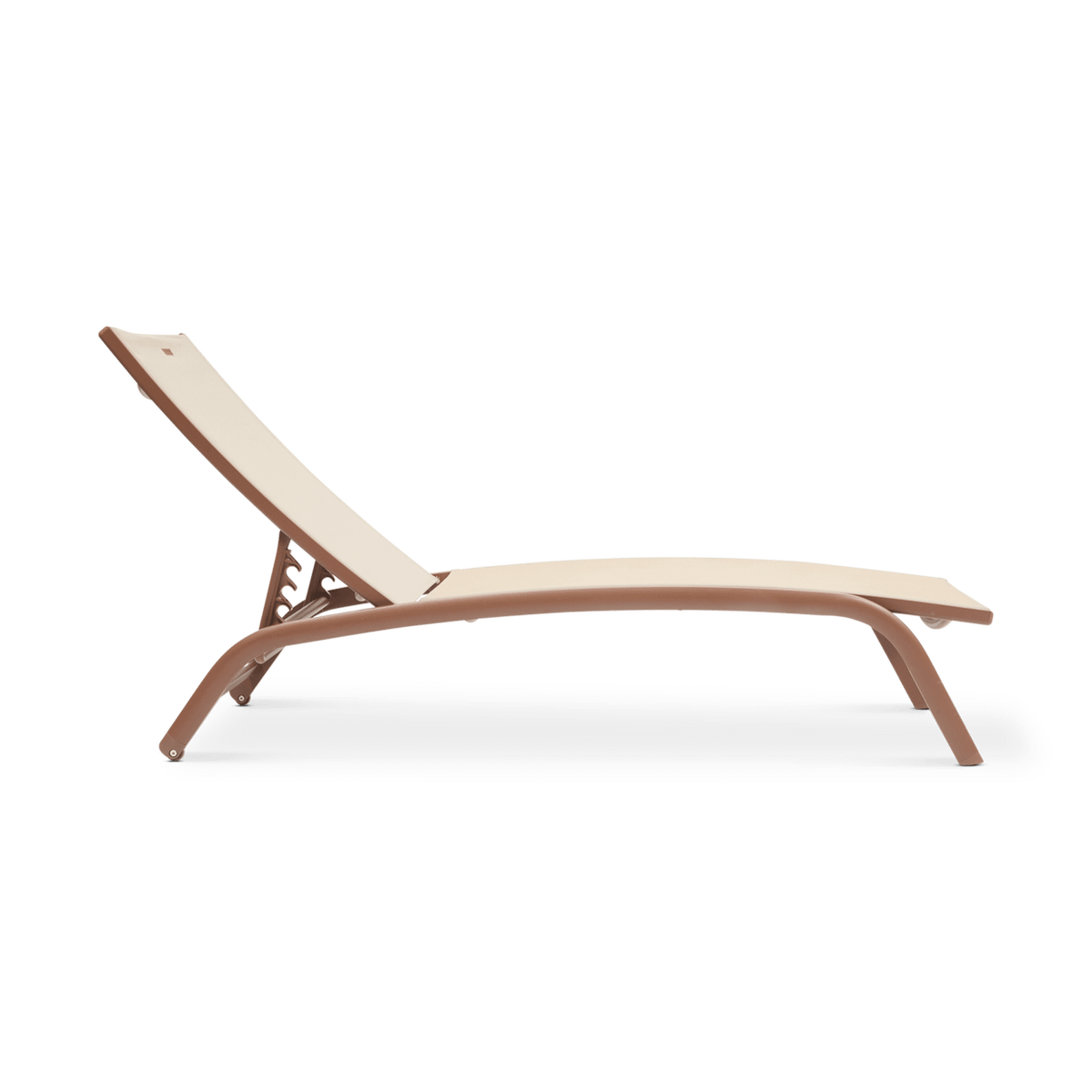 Het GRADARA Ligbed is ontworpen voor ultiem comfort en een stijlvolle uitstraling. Het aluminium frame in de warme kleur Acajou vormt een elegant contrast met het textileen ligvlak in Linen kleur.