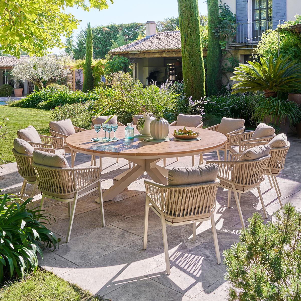 Tuintafel LUCERA Houtlook Walnoot/Beige Ø220
