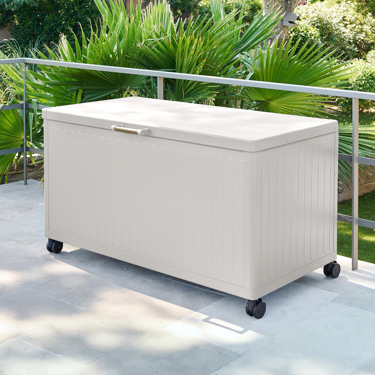 De RAGUSA Opbergbox biedt een praktische én stijlvolle oplossing voor het opbergen van tuinkussens, speelgoed of accessoires. Het aluminium ontwerp in beige geeft een moderne, natuurlijke uitstraling die mooi aansluit bij hedendaagse tuininrichting.