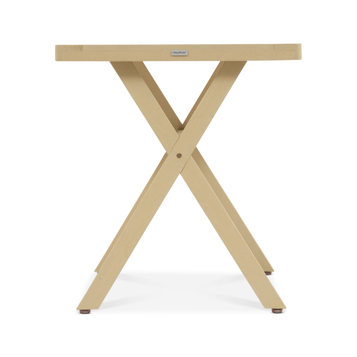 De CAMPANIA Tuintafel combineert natuurlijke elegantie met praktisch design. Het tafelblad in eucalyptushout straalt warmte uit, terwijl het verfijnde kruisframe zorgt voor een moderne, luchtige uitstraling.