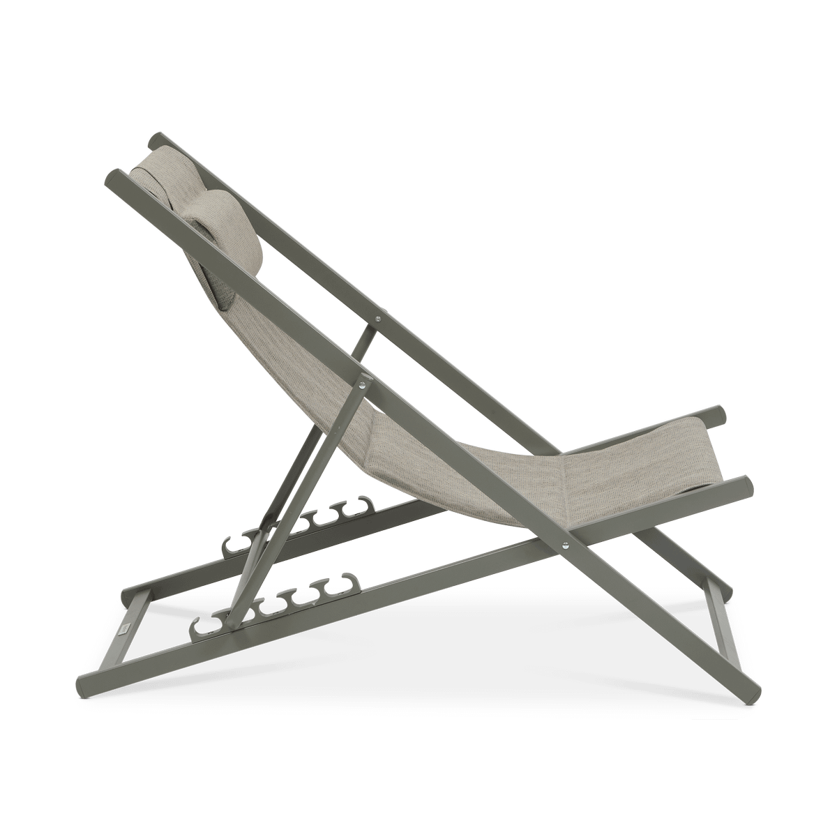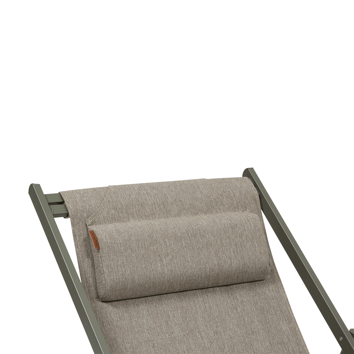 Dankzij de verstelbare standen kies je moeiteloos jouw ideale zithouding — rechtop om te lezen of heerlijk achterover om te ontspannen in de zon. Het geïntegreerde hoofdkussen verhoogt het comfort en maakt lange zomerdagen nog aangenamer.