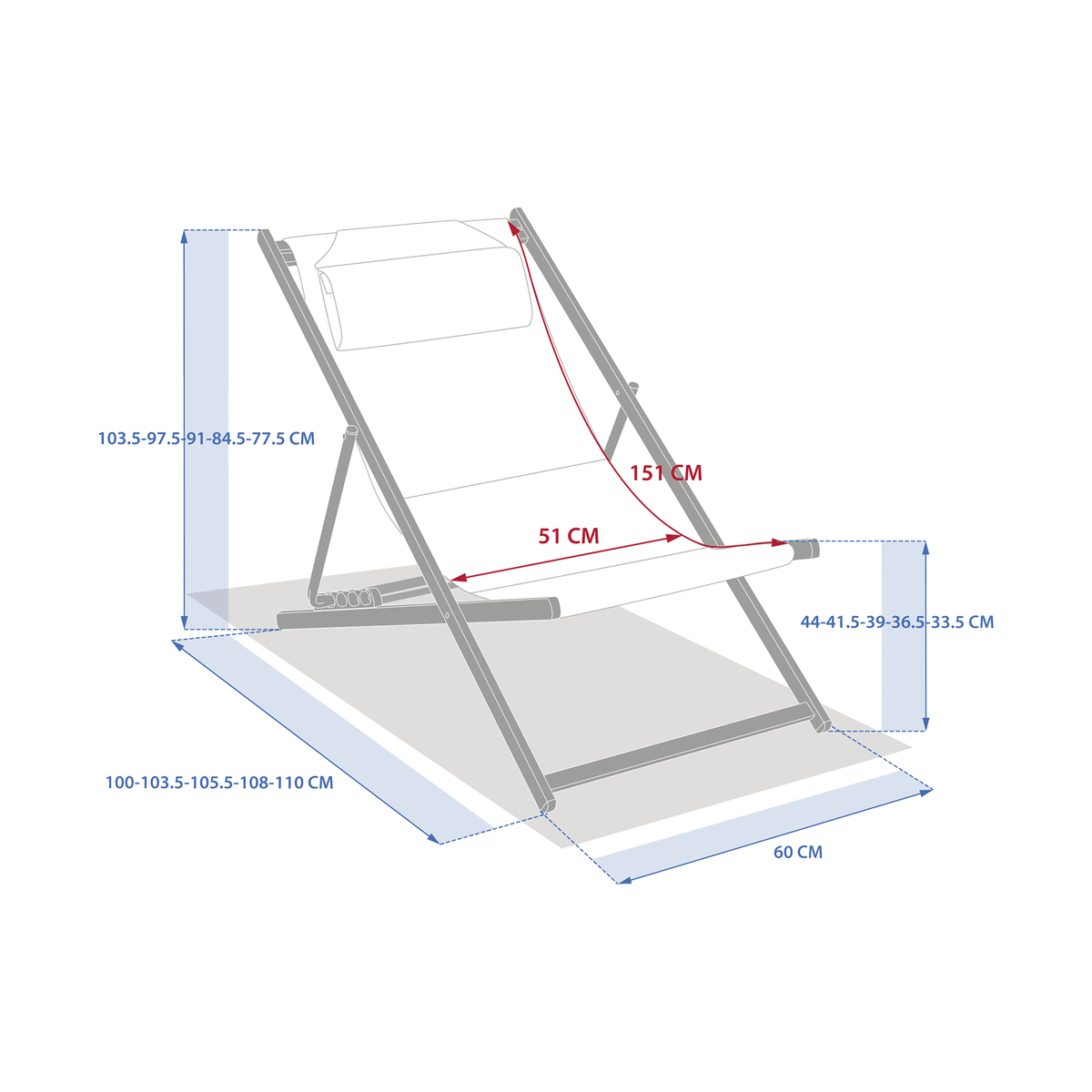 Dankzij de verstelbare standen kies je moeiteloos jouw ideale zithouding — rechtop om te lezen of heerlijk achterover om te ontspannen in de zon. Het geïntegreerde hoofdkussen verhoogt het comfort en maakt lange zomerdagen nog aangenamer.