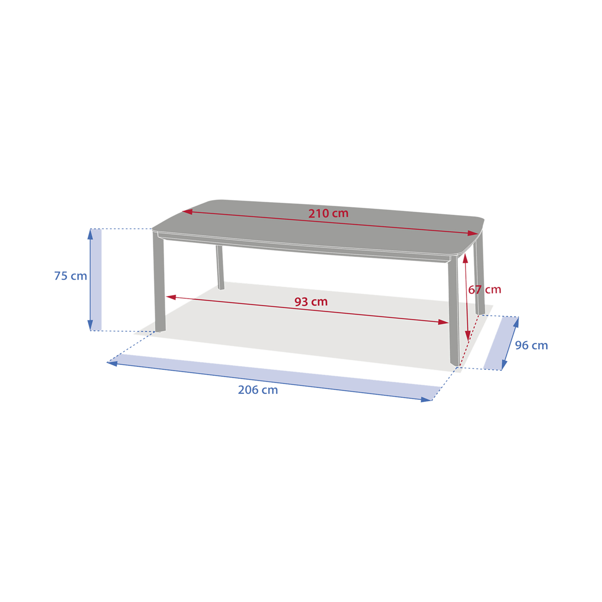 Tuintafel Mantova combineert natuurlijke warmte met een strak en tijdloos design. Het beige tafelblad vormt een elegant contrast met het honey kleurige onderstel, wat zorgt voor een zachte en uitnodigende uitstraling op het terras. Met zijn afmeting van 210x100 cm biedt deze tafel voldoende ruimte voor gezellige diners en ontspannen momenten buiten. Dankzij de verfijnde afwerking en de duurzame materialen is Mantova een stijlvolle en praktische keuze voor wie houdt van comfortabel tafelen in een warme, moderne setting.
