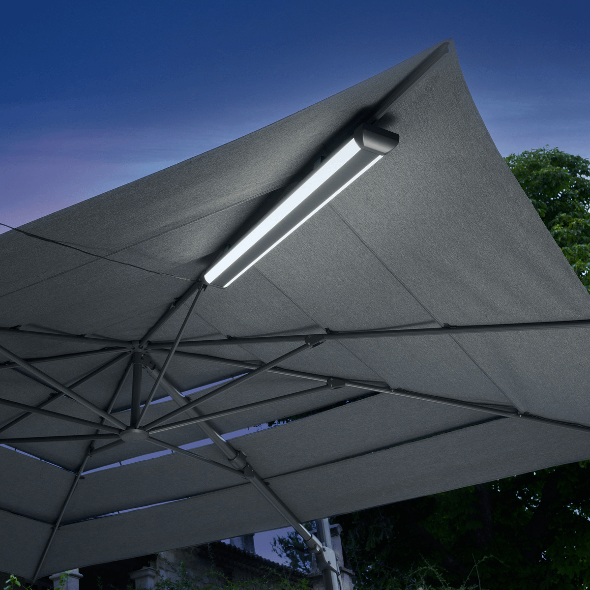 Parasol OVADA combineert een eigentijds design met bijzonder praktisch gebruiksgemak.