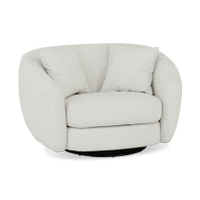 Draaifauteuil JEROOM biedt een perfecte balans tussen luxe en comfort. Met zijn royale, ronde vorm en zachte lichtgrijze bekleding straalt deze fauteuil pure gezelligheid uit. Dankzij de draaifunctie geniet je van extra flexibiliteit en bewegingsvrijheid, ideaal voor een dynamische leefruimte. De diepe zitting en zachte kussens zorgen voor een heerlijk ontspannen zitervaring. Een stijlvolle eyecatcher die moeiteloos past in zowel moderne als tijdloze interieurs!