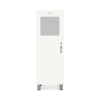 The Rebel. Meet MALIBU. Geïnspireerd door de jaren '50 en '60 waarin jongeren via muziek, mode en kunst naar manieren zochten om zich af te zetten tegen gevestigde waarden, viert Malibu de Rock 'n Roll spirit waarin vrijheid en persoonlijkheid centraal staan. Malibu is jong, rebels en heerlijk kleurrijk! Met zijn stijlvolle, retro design dat het midden houdt tussen modern en retro, en zijn 9 happy colors, is Malibu een ode aan de vrije geest van de Amerikaanse surfcultuur midden vorige eeuw. Deze bergkast met glazen venster is een fijne opbergplaats voor al je spulletjes. De bergkast is voorzien van 2 legplanken en heeft een breedte van 50cm, een diepte van 41cm en een hoogte van 143cm.