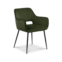 Deze fluwelen eetkamerstoel NELE nodigt je uit met zijn uitnodigende vorm en eigentijds design. De gestoffeerde grijze kuip met armleuningen biedt een ontspannen zitcomfort terwijl het zwart gepoedercoate metalen onderstel voor stevigheid zorgt en de stoel een moderne uitstraling geeft.