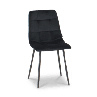 Stoel DODGE in Velvet Black is een fijne stoel voor elke eetkamer. Met zijn compacte afmetingen zorgt hij voor zoveel mogelijk mensen aan tafel. Zijn mooie stiksels, zachte stof en stevige onderstel zijn de kers op de taart!